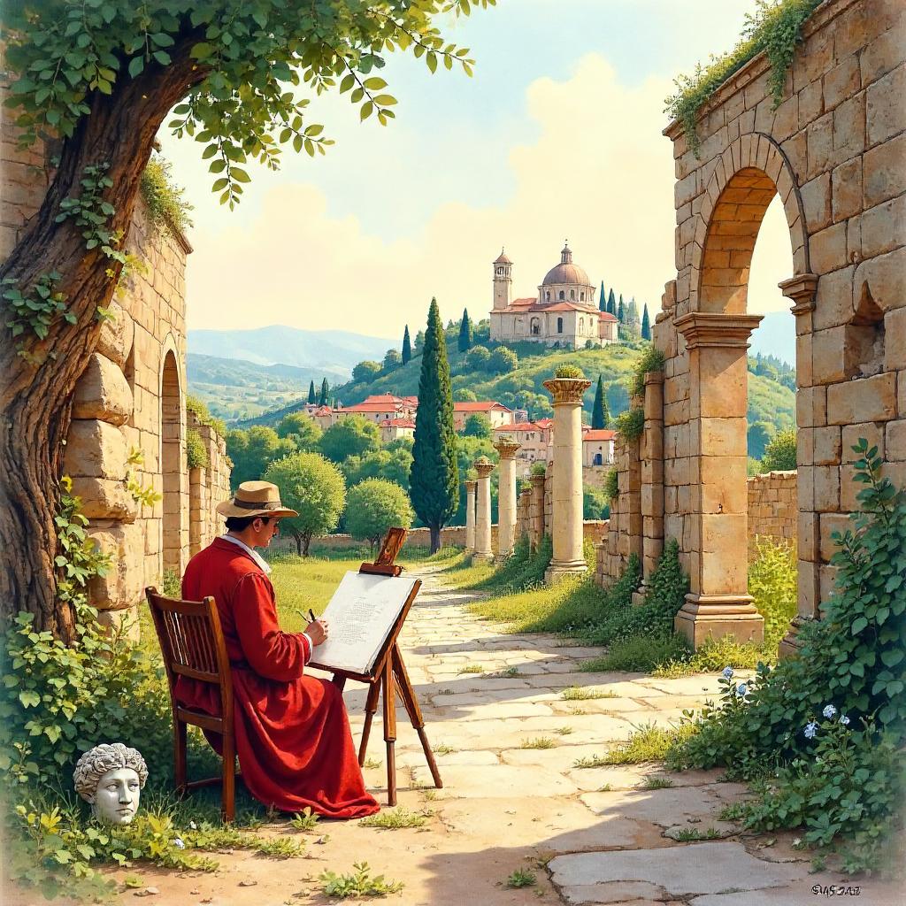 Watercolor Ruins in Renaissance Italy