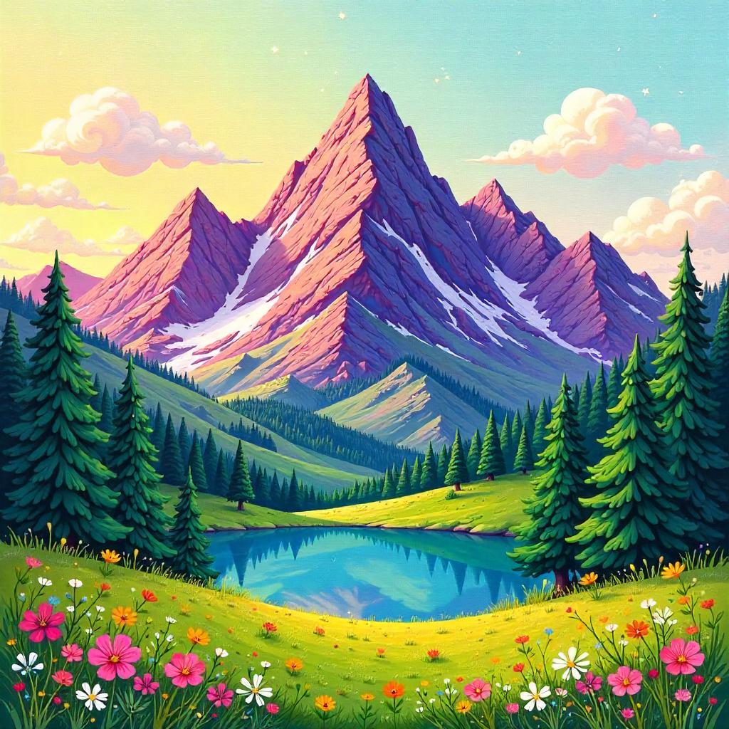 Vibrant Cartoon Mountain Painting
