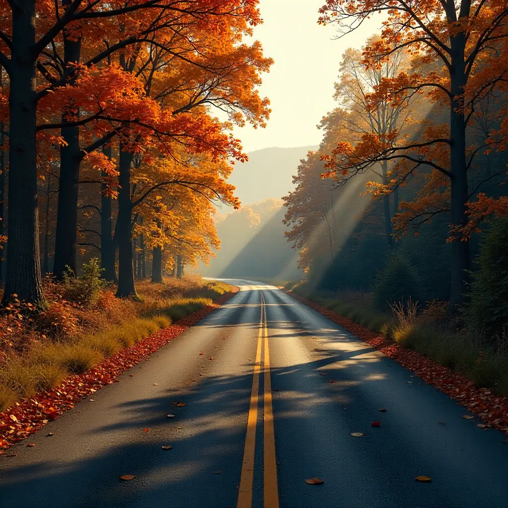 Autumn Road: Tranquil Leaves in Quiet Light