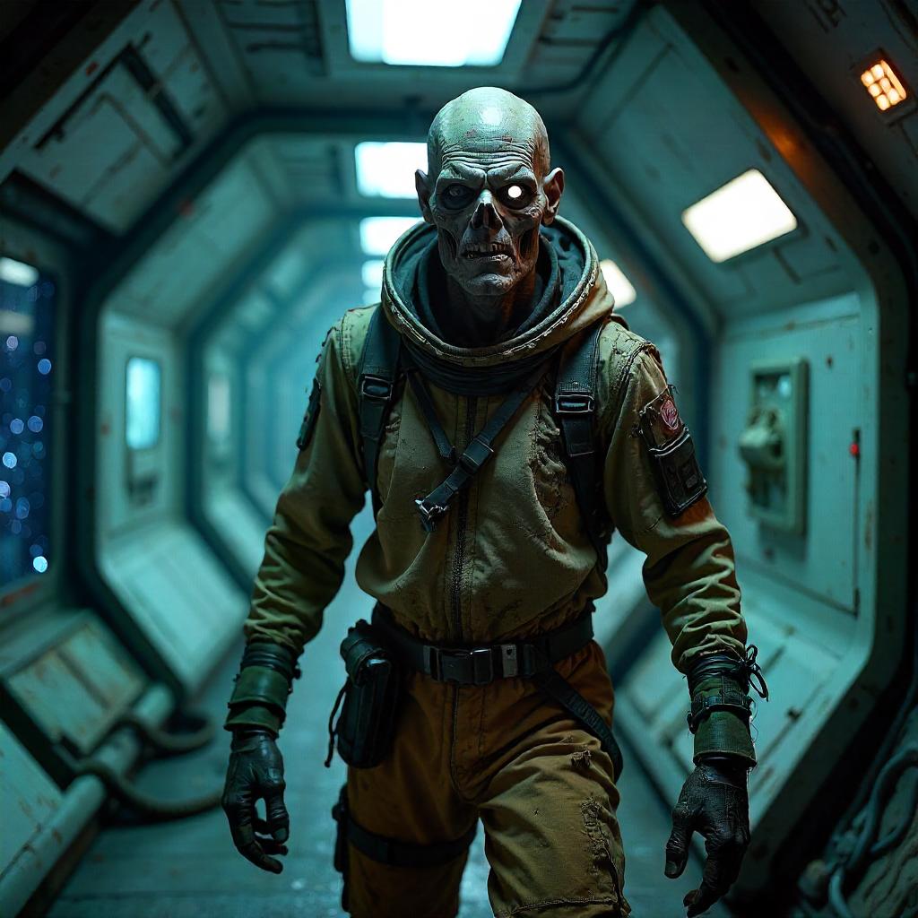 Photorealistic Zombie Aboard a Futuristic Spaceship